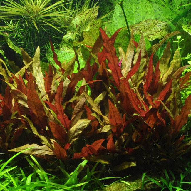 Alternanthera reineckii is an easy to grow stem plant that will thrive in most aquariums. Stems becomes 25-50 cm tall. Good light encourages the leaves to turn red.